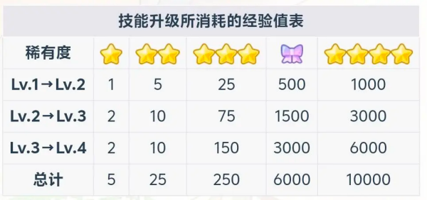 与专家训练不同的是,技能每级所需的心愿碎片数量可能不同,如3星卡从Lv.1升到Lv.2需要25心愿碎片,而Lv.2到Lv.3需要75心愿碎片。