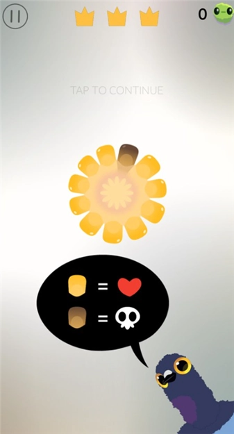 3、进入游戏如图,玩家需点击屏幕来控制鸽子啄玉米,啄到坏的玉米则失败;