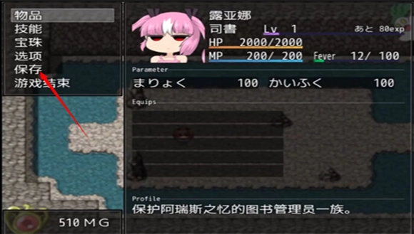 2、然后你就能看到菜单栏,点击保存即可进行存档