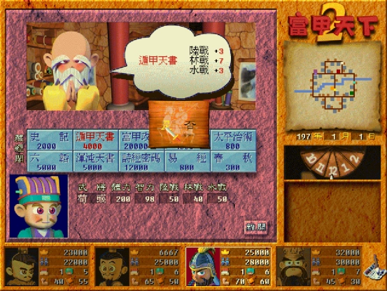 《富甲天下2》是一款融合休闲、策略与回合战略元素的角色扮演游戏,同时也是经典三国题材大富翁系列的第二部作品。1998年推出的这款游戏,延续了前作的优秀设定,巧妙地将大富翁玩法与三国题材相结合,为玩家带来独特的游戏感受。在画面呈现上,游戏采用3D造型,角色设计成可爱的Q版风格,开场动画趣味十足,整体氛围轻松诙谐。玩家可从刘备、曹操、孙权、董卓这四位主公中选择角色,每个角色都有独特的属性,游戏最多支持四人同时游玩,率先占领所有城池的一方即可实现天下一统。游戏中包含“故步自封”“调虎离山”“过河拆桥”等多种趣味计谋,这些计谋既能在锦囊铺购买,也能通过随机事件获取,为游戏过程增加了更多不确定性。此外,游戏还支持多人联机模式,玩家可以邀请好友组队,一同完成游戏任务。