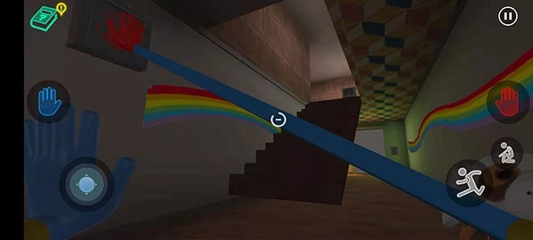 手套收集完毕后会自动装备到手上,此时能看到墙的两侧分别有红色和蓝色的手印,玩家只需将手套对准对应的手印区域,就能打开房门。