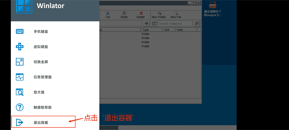 1、点击‘退出容器’
