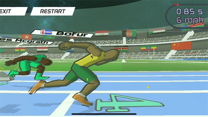 进入游戏,玩家面对赛道场景及角色。通过屏幕虚拟按键控制角色双手双脚动作。屏幕左右两侧分别设有控制双手和双脚的按键,通常左侧为双手控制区,右侧为双脚控制区。每个区域有上下两个按键,分别对应肢体的抬起与落下动作。例如,点击左侧上方按键,角色左手抬起;点击右侧下方按键,角色右脚落下。玩家需协调双手双脚按键操作,模拟跑步动作。同时,可通过滑动屏幕调整视角,观察赛道环境及周围对手情况。