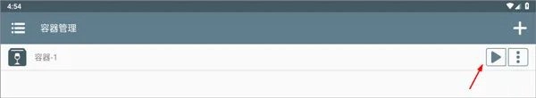 3、创建容器后,点击播放按钮运行。