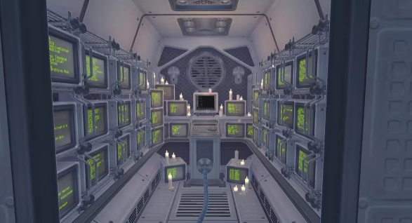 在 “傻瓜和被遗忘的谜题 ”一章中,进入有监视器屏幕的密室,在终端机上输入信息。