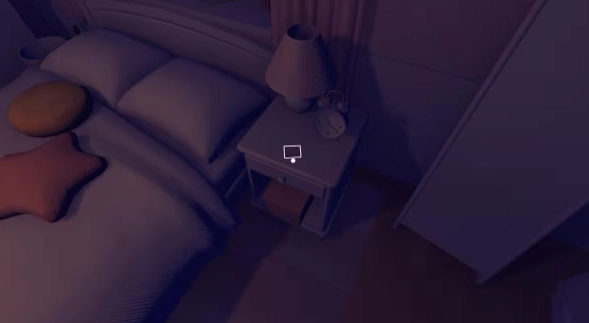3、游戏采用3D第一人称,玩家扮演的主角从床上醒来,首先拿起桌子上的手机;