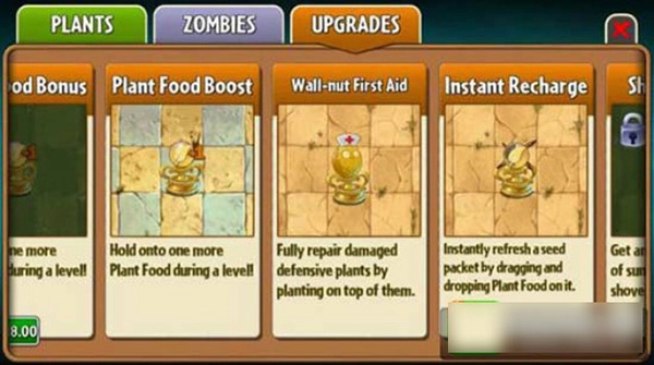 【植物获得】与一代一样,打到哪关就给哪个植物。