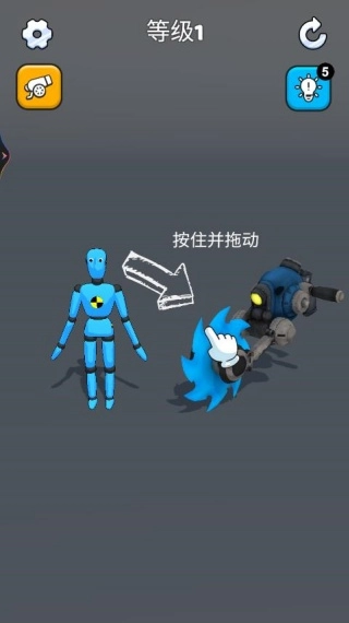 2、最开始的几关很简单,系统会给你一些小提示,比如如何拖动布偶来进行击打,帮助你轻松上手。