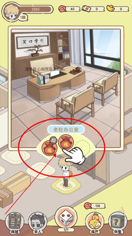 5、摇多次之后,进入老肚办公室,可以领取福袋。
