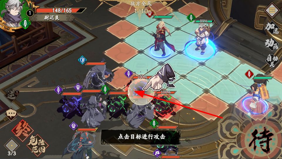 1、在游戏战斗场景中,点击想要攻击的目标,发起移动攻击指令,开启与敌人的交锋,为后续战斗奠定基础。