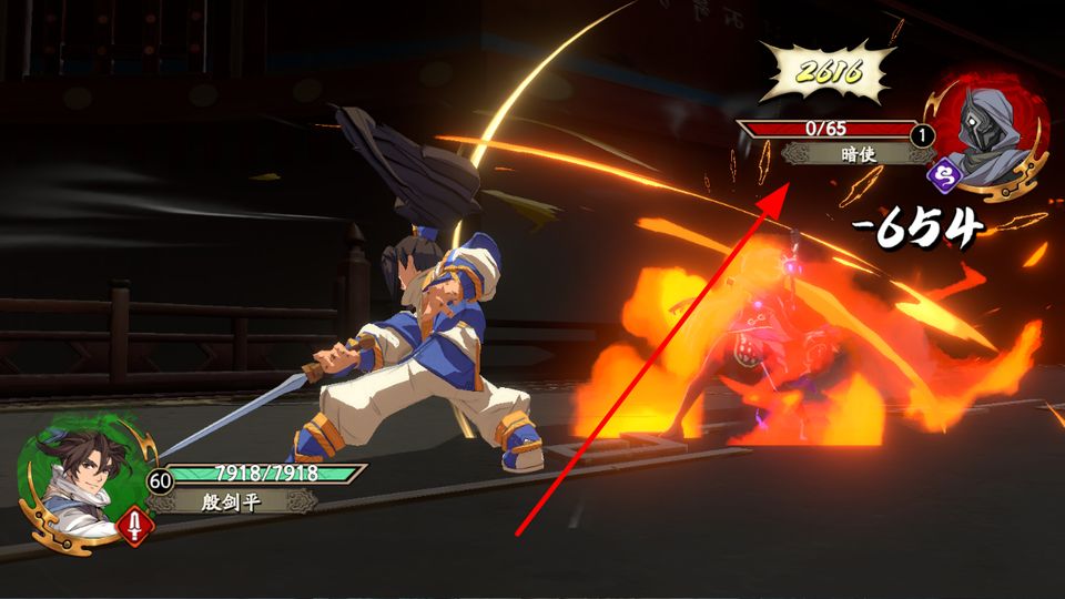 3、战斗过程中,释放技能,像殷剑平释放强力招式,对敌人造成血条大量伤害,有效打击敌方势力,助力战斗优势。