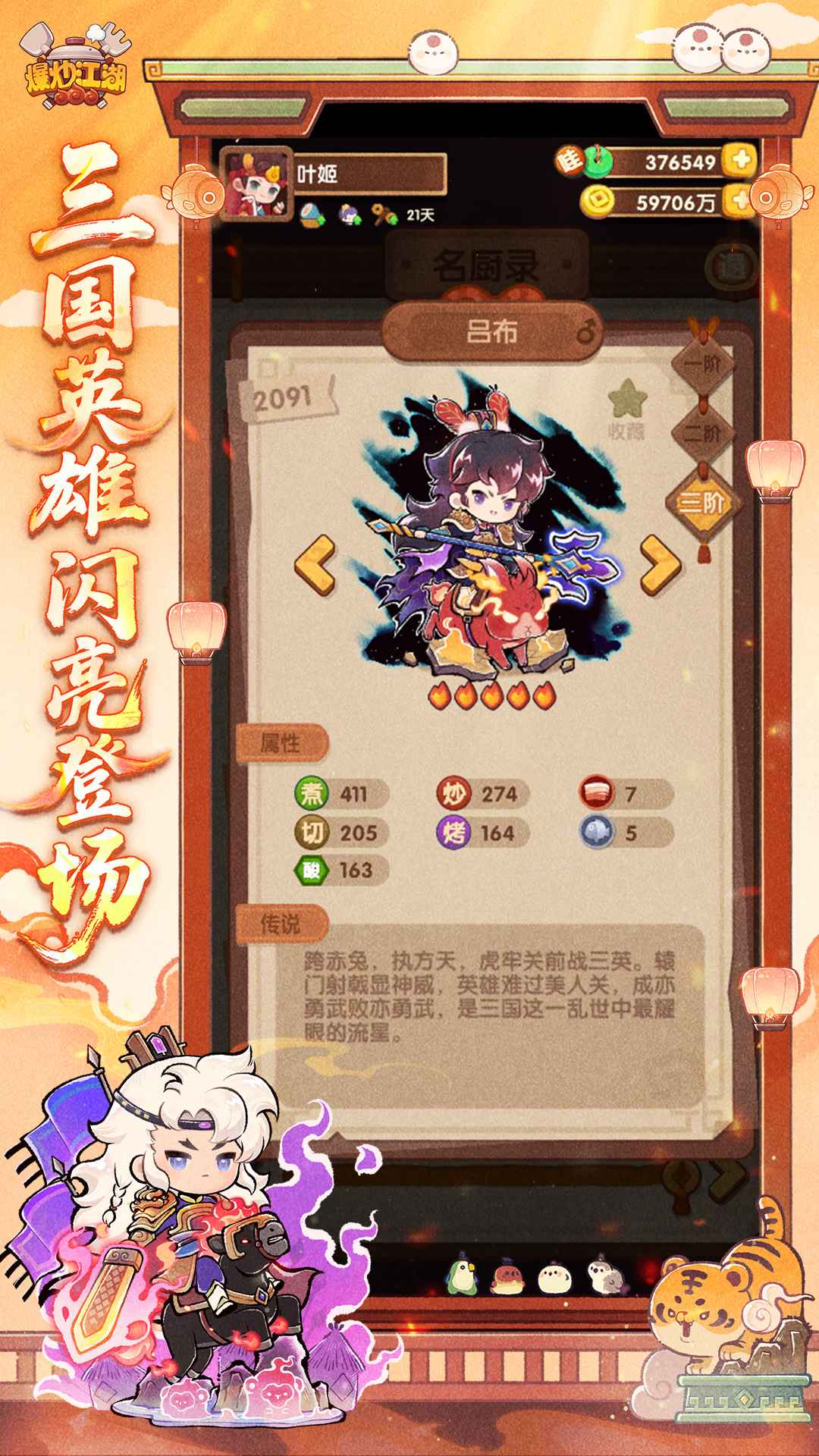 爆炒江湖手游是一款古风休闲模拟经营游戏,将中华传统美食与独特的江湖元素巧妙结合,为玩家带来一场别具一格的挑战旅程,在冒险途中结识各路擅长料理的侠客,他们各有所长,精于不同菜式。多种对战模式,招募到心仪的侠客后,便能参与激烈的厨艺比拼,体验新奇的武侠笔试玩法,感受不一样的江湖冒险。