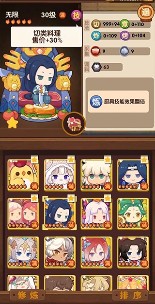 (个人心中爆炒最强厨师,没有之一!!时间刺客+贵客厨,搭配最强厨具浑星月仪,单厨子就有110%的贵客率+时间减免30%,神中之神!)