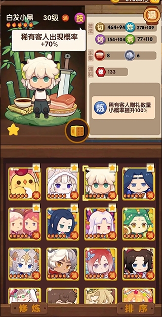 一款Q版画风的放置模拟经营游戏,在游戏中有非常多的玩法活动玩家要想经营好就需要全面了解所有的活动,比如开业,玩家需要选择好厨师和要制作的菜肴就可以开始营业了,然后是探索,根据主线任务的进度会解锁新的地图,通过消耗金币升阶地图可以解锁更多可采集食材,在探索中食材种类、数量以及消耗的时间和厨师以及地图等级都有重要关系玩家需要注意。