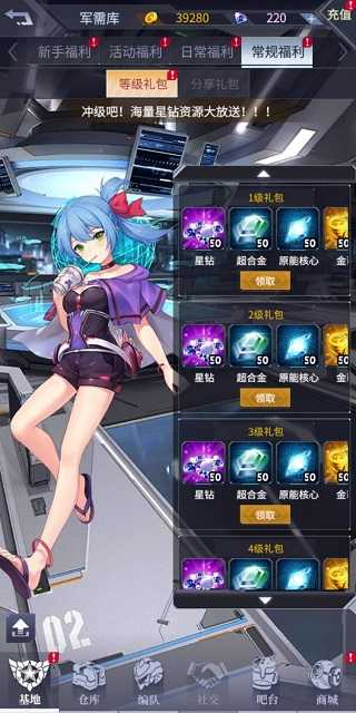 常规福利包括等级礼包和分享礼包。达到对应等级或完成分享累计可获得7000~8000星钻。