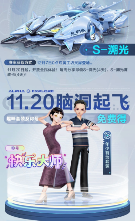 经典赛车全面升级,酷炫时装、个性翅膀自由搭配,打造独一无二的专属形象!