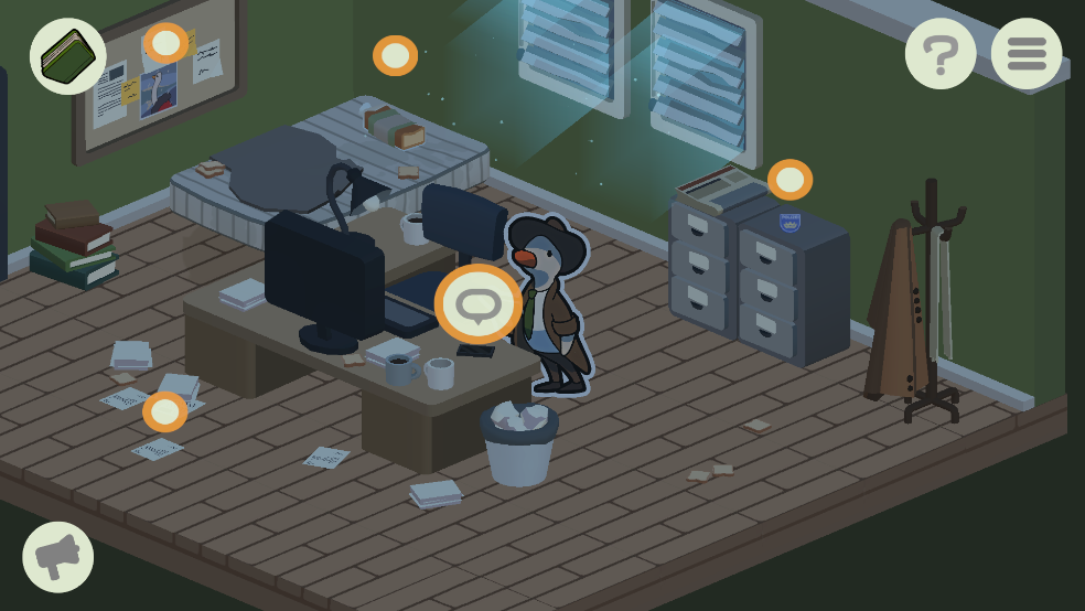 一款非常好玩的侦探界面游戏,玩家在游戏中将扮演这一只鸭子,通过不断地搜集线索,询问嫌疑人来寻找游戏中的蛛丝马迹,找到最终的凶手,更有丰富多彩的主线剧情故事等待玩家来体验。