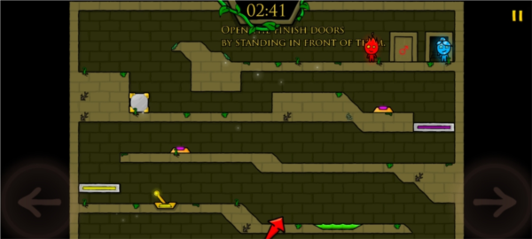 Fireboy应该来到红色标记的门,Watergirl应该找到通往标有蓝色标志的门。