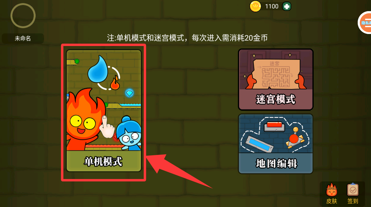 3、在游戏界面点击红色框框里的单机游戏并进入。