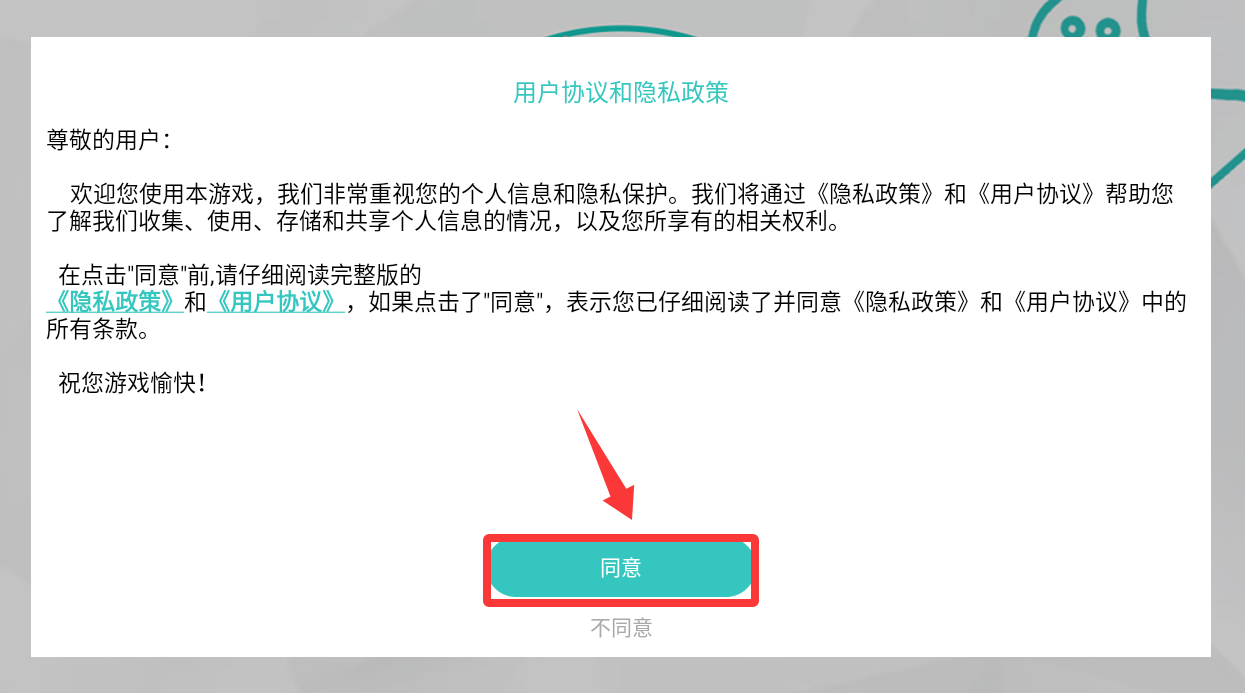 1、点击用户协议和隐私政策里的同意并进入。