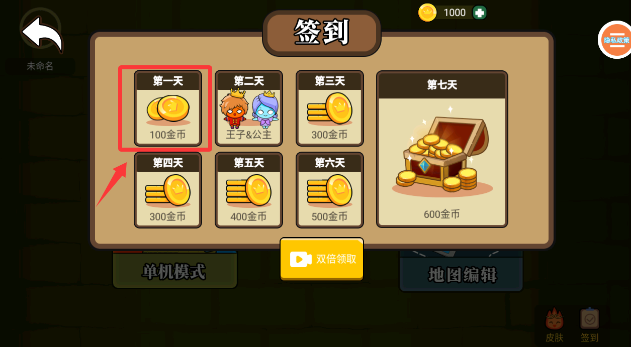 2、进入游戏会弹出一个每日签到奖励,点击领取。