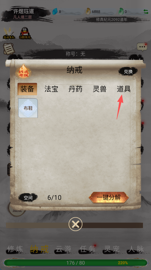 3、点击屏幕下方的“纳戒”,也就是寻常游戏的背包。