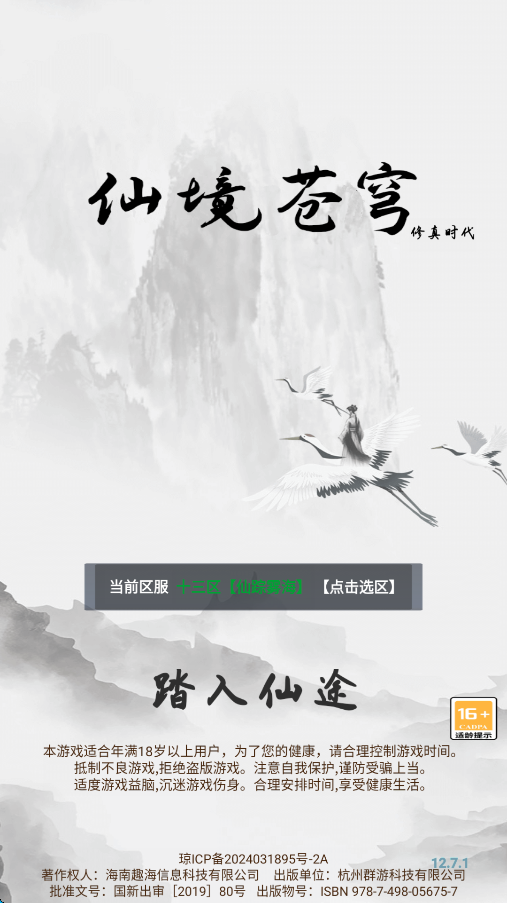 1、选择区服后点击“踏入仙途”。