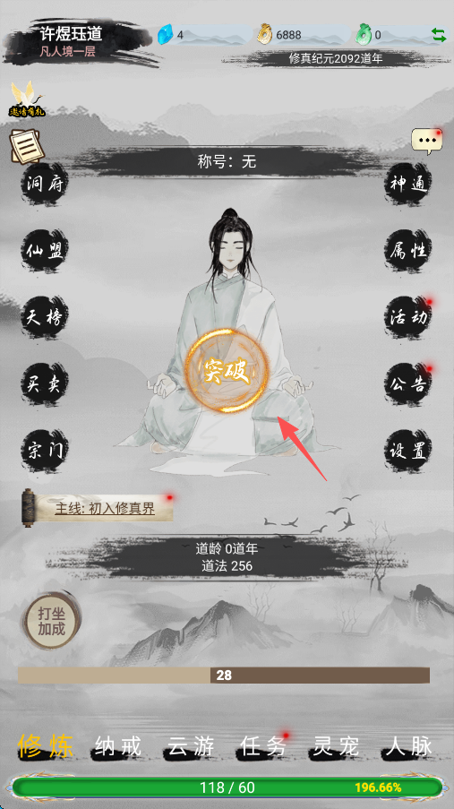 2、明确的境界划分让你在修炼过程中有清晰的目标,随着等级的提升,从人界到仙界,玩家的成长之路充满挑战与乐趣。