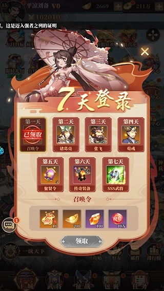 每天领10抽,传奇武将一网打尽;