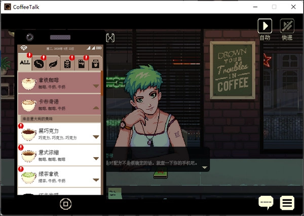 解忧咖啡馆(Coffee Talk)手机版是一款独特的咖啡师模拟游戏,这款游戏采用了复古的像素风格,配合大面积的暗色调和流畅的动画,营造出昏暗的咖啡店室内氛围。来往的客人包括各种漫画式的角色设计,不仅有人类,还有精灵、兽人、人鱼等种族,但总体来说,这些角色之间相处融洽。这种独特的视觉风格和丰富的角色设计,使得游戏在玩家中颇受欢迎。