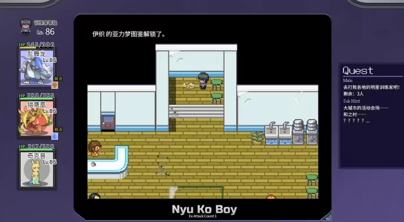 跟着右侧提示走,去道馆注册过剧情,按照提示走 宝可梦中心二楼睡觉,过剧情一路从大城市往上走,再过剧情,必输局上,二楼看剧情,看完奇克普进化了,下楼出门。