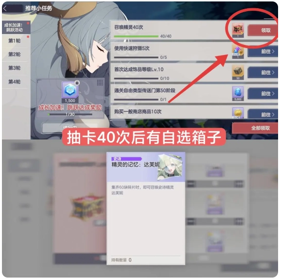 游戏开局有个无限十连自选精灵的机会,这里推荐大家选择秋(主C)或者达芙妮(坦克),