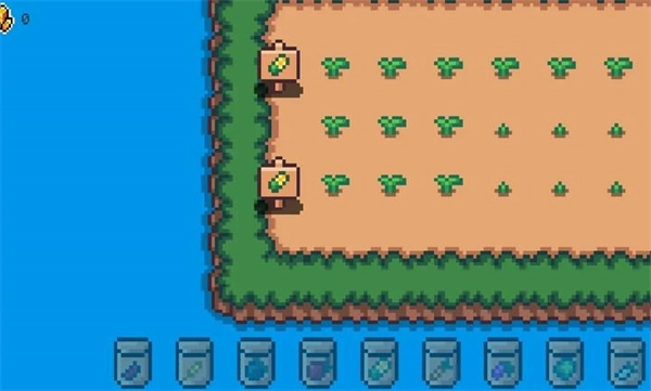 在像素休闲农场的界面里点击开始按钮,就能进入游戏的农场种植界面,进而开启农场经营的相关流程。