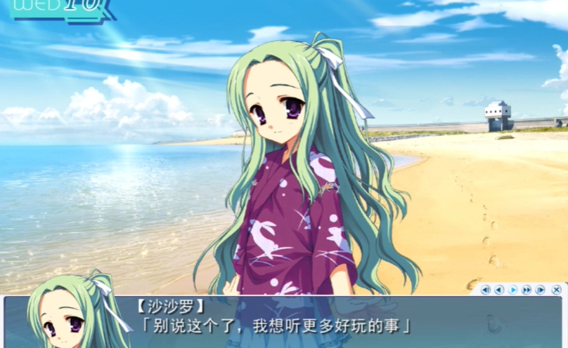 12月8日--------被闹钟叫醒-----------思考梦中的事情--------旅馆帮忙-----和叔母对话------继续帮忙------打扫途中被沙沙罗找到----两人谈话-------男主回旅馆拿垃圾-----沙沙罗离开----男主寻找沙沙罗---------遇到沙沙罗父亲------在海滩找到沙沙罗-------两人在海滩闲谈-----两人约定明天一起玩-------男主送沙沙罗回去---路上交谈----再次约定明天一起玩------神社前告别-----遇到沙沙罗父亲----------交流一波------回到旅馆