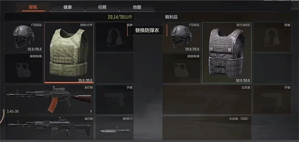 防具可以佩戴头盔与装甲,且分为6个等级。(子弹是7个等级)