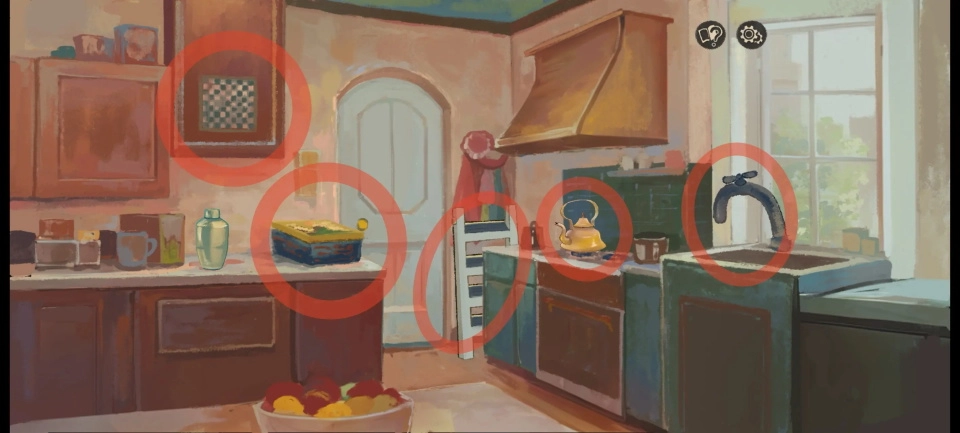 点开桌子上的盒子拿取里面的火柴,拿走地上的梯子和灶台上的水壶,将梯子放在顶柜底下。