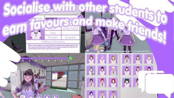 4、与游戏中的其他角色进行社交互动,包括同学、老师等。通过与他们交流,获取情报或帮助,助力恋爱进程。