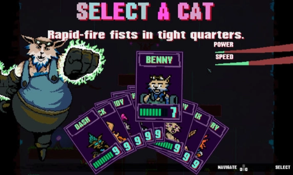 赛博喵战士游戏手机版是一款融合复古朋克美学与Roguelite元素的2D动作游戏,这款手机版游戏共有五个关卡区域,玩家可以从中央枢纽关卡出发,按照任意顺序挑战前四个区域。玩家可以操控九位风格迥异的猫咪角色,每个角色都有独特的武器和属性,适合不同的游戏风格。期待你在游戏中的绝佳表现!