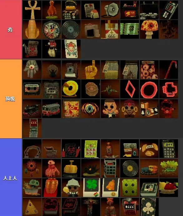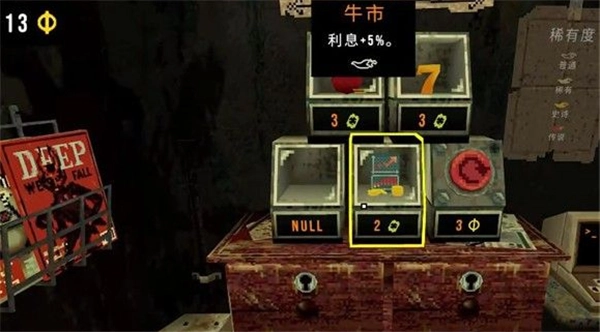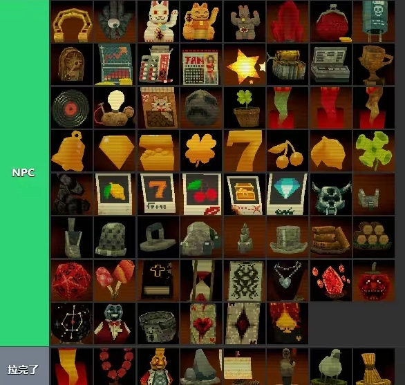 然后进入死线七就可以把装备定型了。¹房产证²扩音器³日记⁴股神⁵招财猫⁶敦实猫⁷马蹄铁⁸刮出希望(这个看个人,我后期才买的感觉有种有用又感觉没用,反正有多位置就买下来了)⁹暗影之书(这个防666的)¹⁰仪式之铃¹¹淘气荷官¹²砖块,然后留三个位置给无底洞,混沌,裂渊。抽屉里面放核按钮,怪异时钟,私教,资本家,这是几个为了防止手贱,把礼券刷没了,或者是把香烟搞断了。