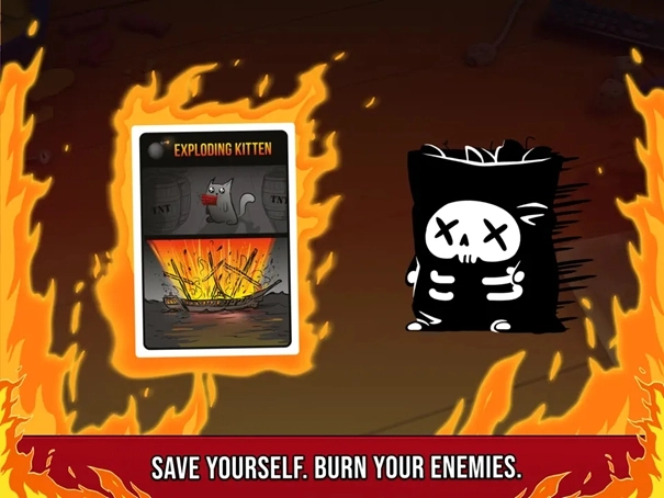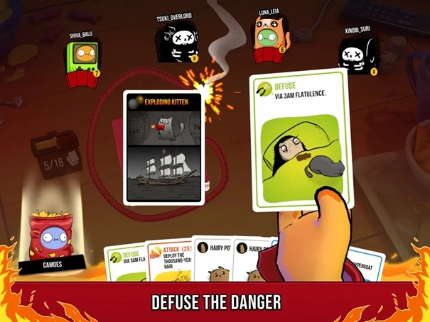 3、在这个多人猫咪卡牌游戏中,玩家抽卡直到抽到一张爆炸猫卡牌,自己飞到空中,然后就出局了,除非有一张解除猫咪武装的卡牌。