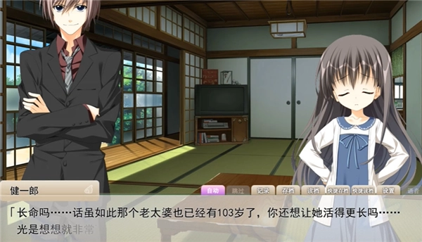 3、单击屏幕推进对话,长按或右键快速跳过已读,开启自动播放,适合解放双手。