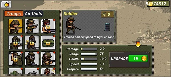 士兵训练:士兵在战斗中积累经验值,以此提升等级并精进技能,从而强化自身的作战效能与生存本领。