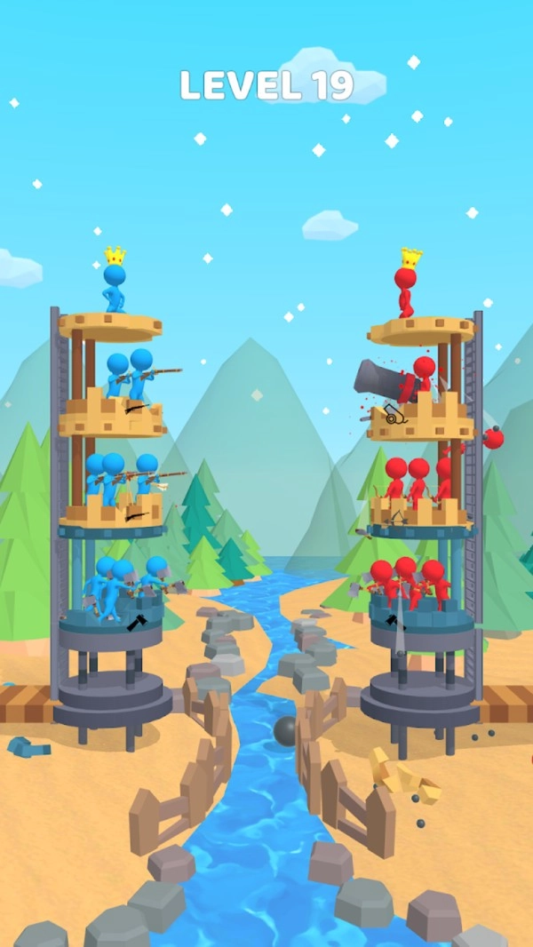 1、大量不同类型的火柴人士兵进行防御工事来对战。战略部署抵御敌人入侵。