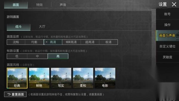 另外,玩家还能在右下角的向上箭头位置,点击设置,对游戏画质、灵敏度等进行调整;