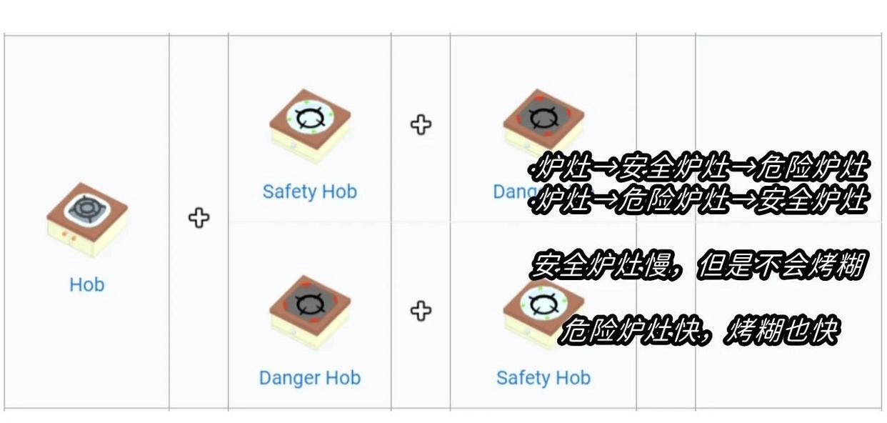 危险炉灶:危险炉灶连接智能抓取器也可以自动化,但是不及时拿走会烤糊。危险炉灶用来烧汤喝最好,不会糊。