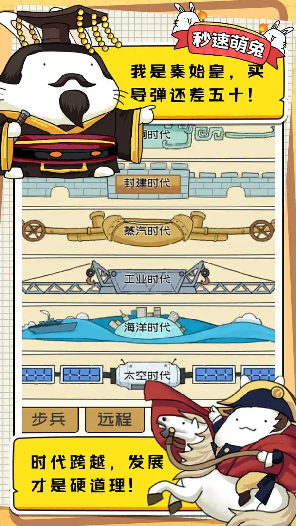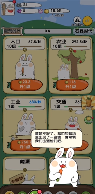 放置挑战玩法:这款游戏融入了放置挑战的机制,玩家即便不在线,也能持续获取收益。通过合理规划金币的使用,不断提升伟兔文明的等级,就能解锁并体验到更多趣味玩法。