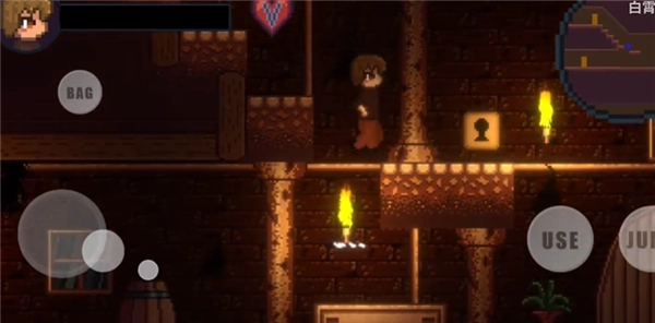 2、趁敌人离开,拾取地面钥匙,前往木板封住的区域按 X 键解锁,进入新区域。