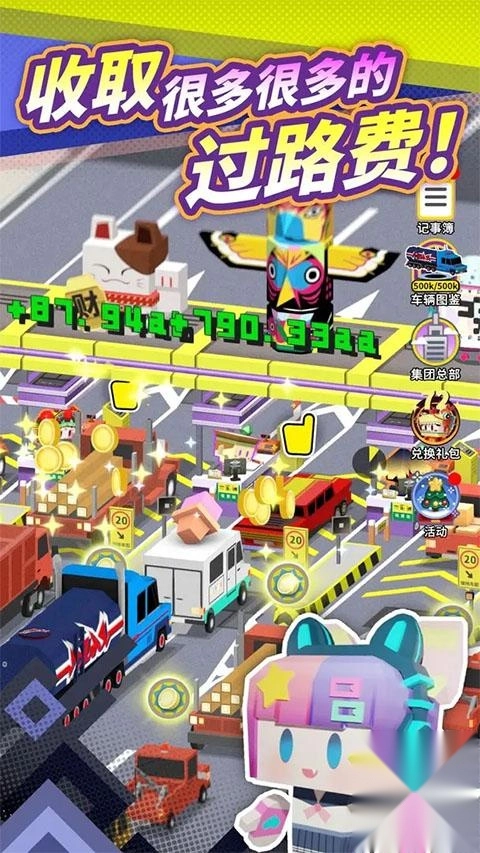 收费站模拟器安卓版是一款画风可爱、玩法轻松的休闲放置模拟经营游戏。在游戏里,玩家将化身收费站站长,通过各种方式让自己的收费站恢复往日的繁荣。玩家不仅能体验把无人问津的废弃收费站一步步建设成收益高、人气旺的站点,还能遇到游戏中各种稀奇古怪的事件。要是想提高收费站的运营效率,也可以挑选合适的员工来帮忙打理工作。