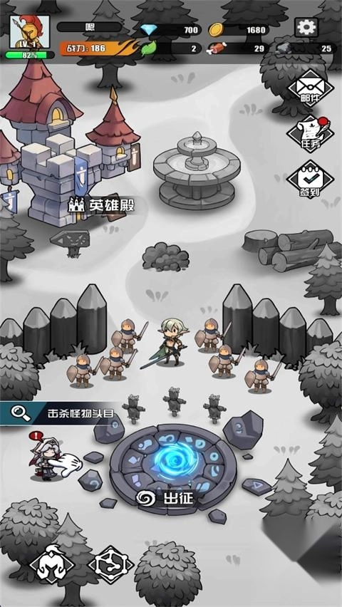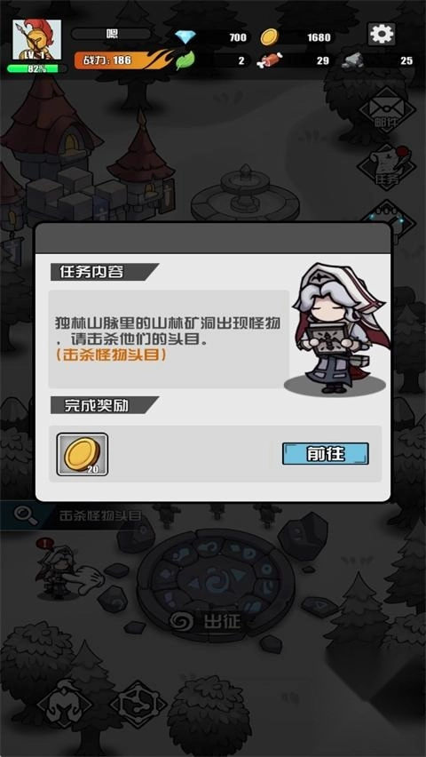 点击屏幕中间的出征按钮,可以选择不同的地图作战。
