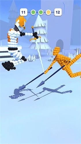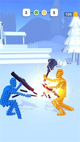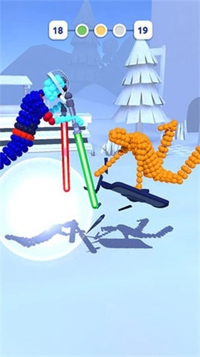 在每一关战斗开启前,玩家都可以给角色更换各式各样的武器,之后需要在关卡里通过合理的拖动操作,让武器触碰到对手,以此来赢得胜利。